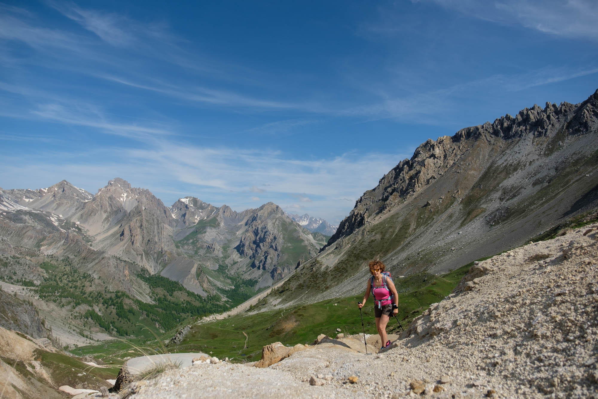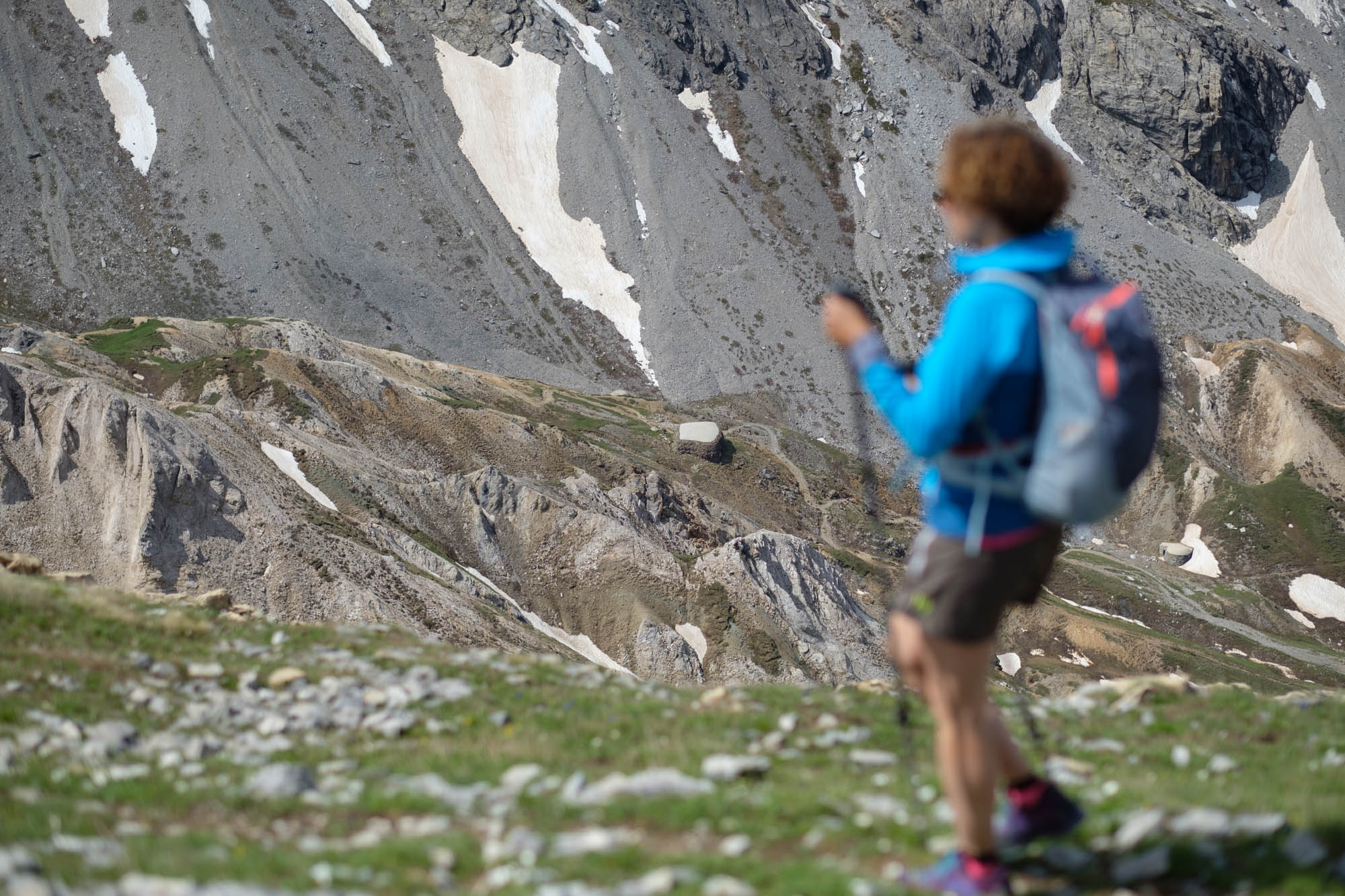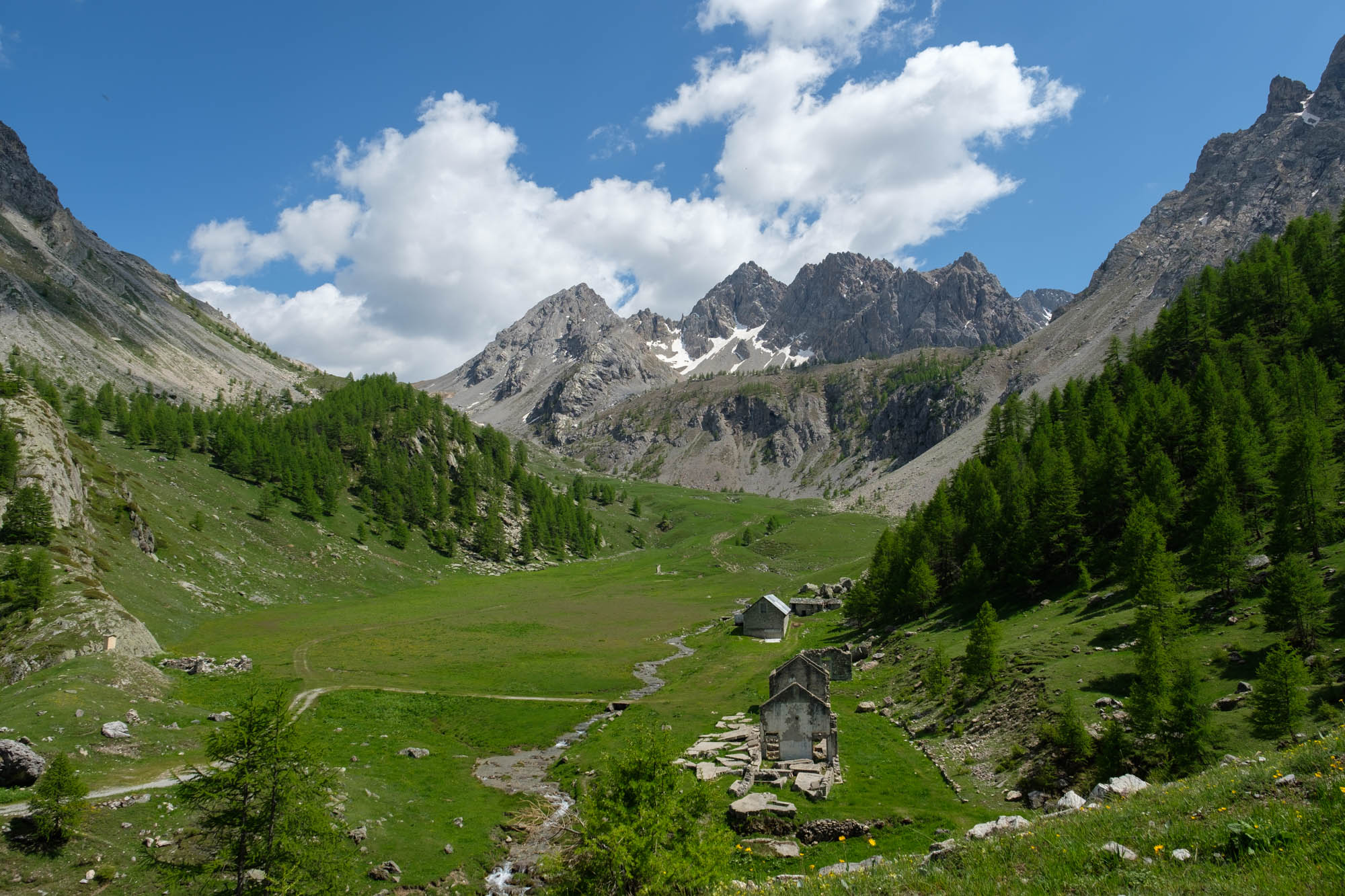 Il comodo sentiero sale con maggior decisione tra i larici che si fanno sempre più radi. All’indietro si aprono panorami via via sempre più interessanti sull’Oronaye e le cime che lo circondano. Il sentiero si tiene più in alto di una coppia di piccoli specchi d’acqua. Improvvisamente le praterie terminano e si entra in una zona erosa con caratteristici gessi affioranti dove si affiancano alcuni bunker dell’Opera 180 del Vallo alpino.